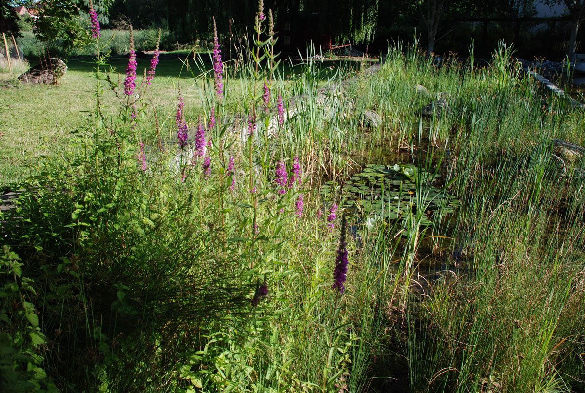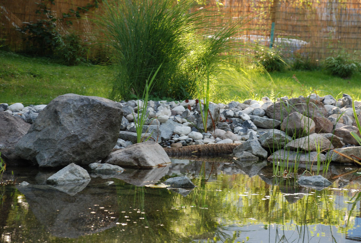 Ein Gartenteich ist keineswegs ein Muss, bietet jedoch weiteren Tierarten wie Molchen, Libellen und Wasserkäfern ein neues Zuhause. Auch mit kleinen Bachläufen oder Sumpfbeeten ist es möglich optische Akzente zu setzen.