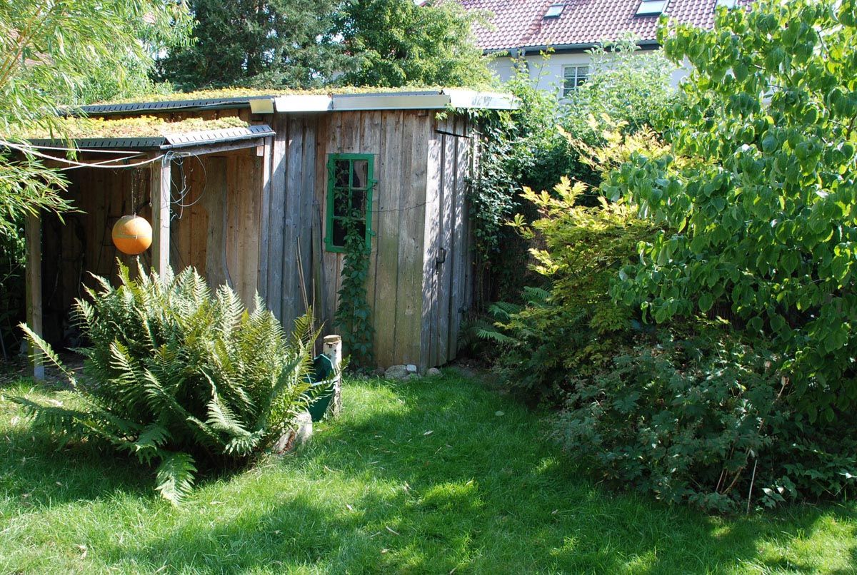 Wenn die Statik es erlaubt, sollte jedes Gartenhaus mit einem grünen Dach ausgestattet sein. So bietet man nicht nur einen optischen Hingucker, sondern zahlreichen Insekten und Kleintieren eine grüne Oase, die sie nutzen können. Außerdem sind alle Gartengeräte, wie Harken, Spaten Rasenmäher gut verstaut und immer an Ort und Stelle.