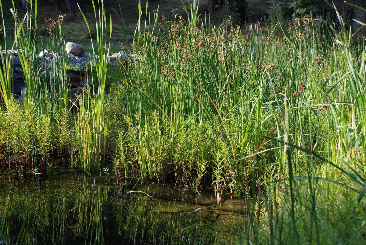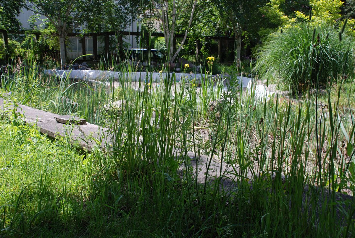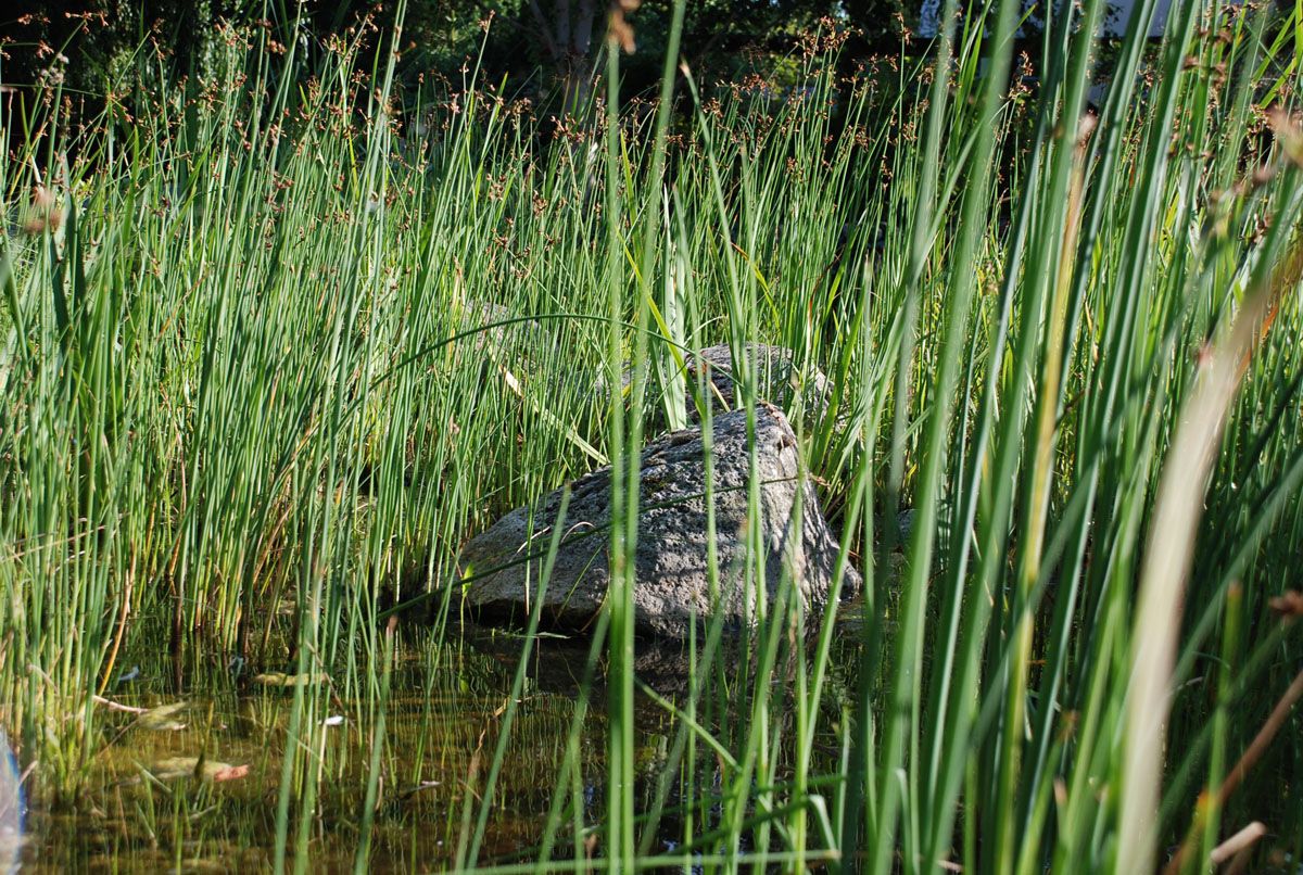 Ein großes Highlight ist ein Schwimmteich, in dem der Flachwasserbereich so ausgelegt und bepflanzt ist, dass es keiner Chemikalien bedarf, um das Wasser klar zu halten.